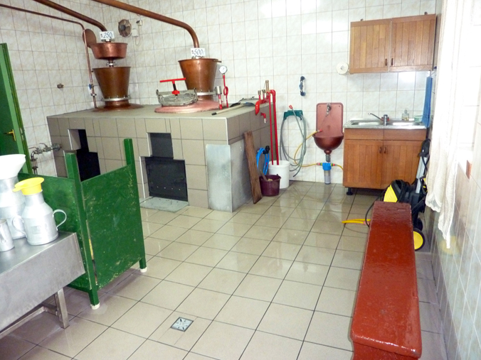 A főzés 400 és 500 literes, réz üstökben, fa tüzeléssel, hagyományos, kétszeri lepárlással történik.